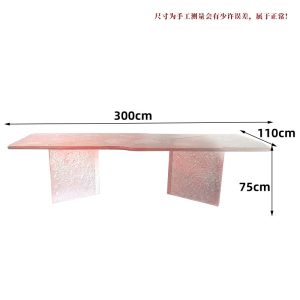 | size | L250*W110*H75 blue, L250*W110*H75 transparent, L300*W110*H75 pink, 150*80*75cm蓝色, 150*80*75cm transparent, 200 * 80 * 75cm green, 3-meter-long Feitian coffee table, 168 * 66 * 74cm gradient blue, 3 chairs+1 table blue, 200 * 86 * 80cm transparent, 6 chairs in brown+1 table transparent, 105cm diameter and 60cm height, 1 coffee table+4 chairs in brown, Wave chair blue, Tree chair blue, Tree chair brown, Stone chair brown |